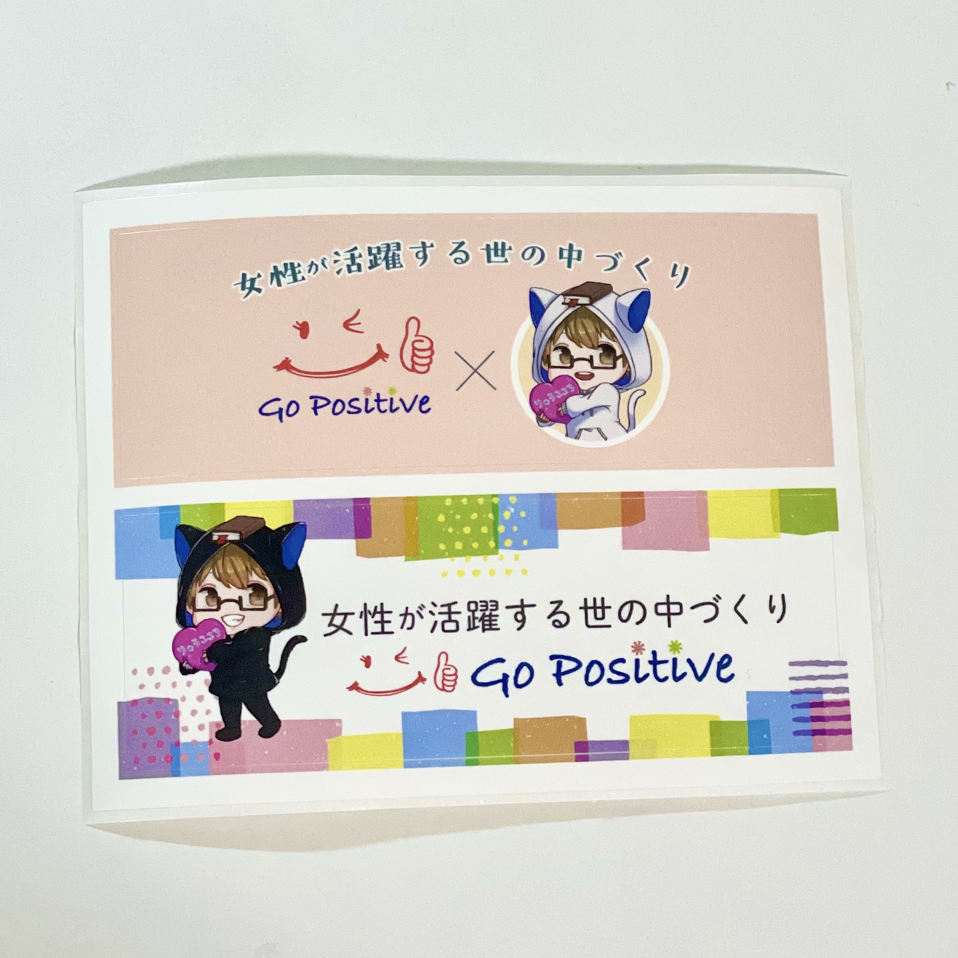 「女性が活躍する世の中づくり」をテーマにした、Go Positive × キャラクターデザインの限定コラボステッカー。